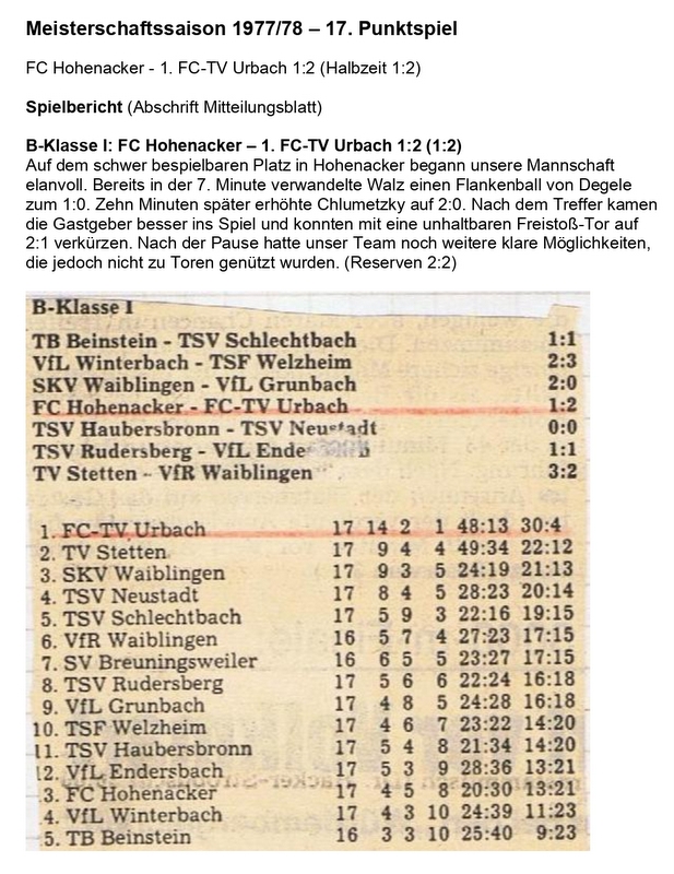 Meisterschaftssaison 1977 78 17. Punktspiel
