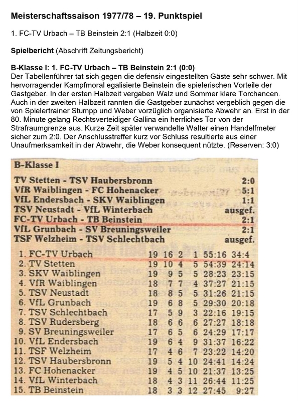 Meisterschaftssaison 1977 78 19. Punktspiel