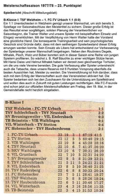 Meisterschaftssaison 1977 78 23. Punktspiel