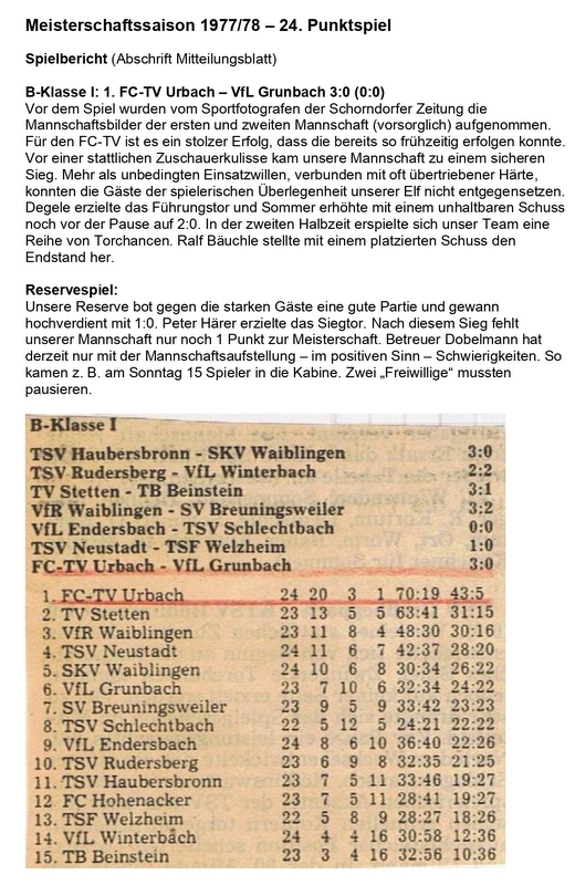 Meisterschaftssaison 1977 78 24. Punktspiel
