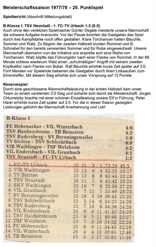 Meisterschaftssaison 1977 78 25. Punktspiel