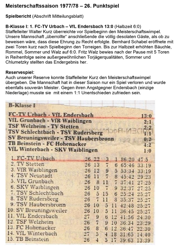 Meisterschaftssaison 1977 78 26. Punktspiel