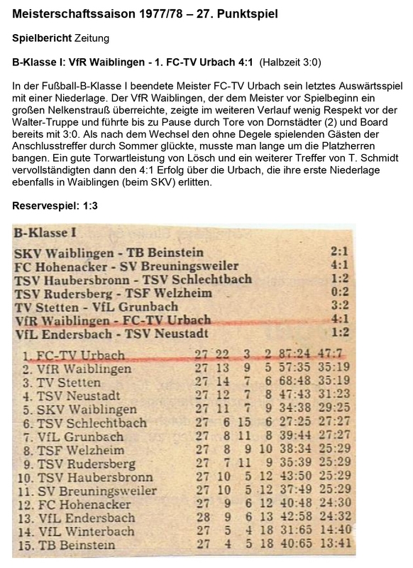 Meisterschaftssaison 1977 78 27 Punktspiel