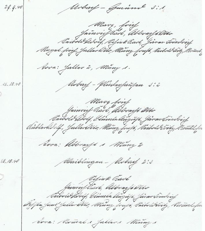 FCTV Urbach Saison 1940 41 29.09 13.10. 20.10