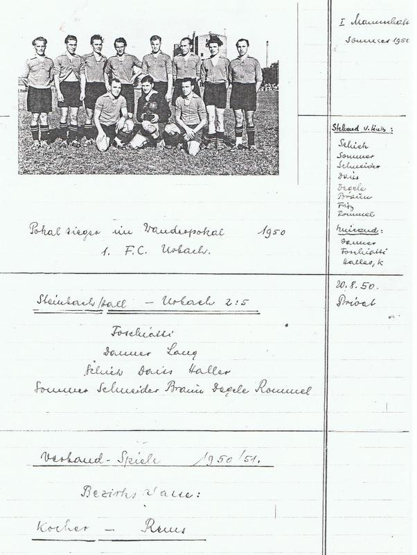 FCTV Urbach Saison 1950 51 06.08.1950 28.05.1950