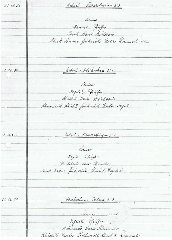 FCTV Urbach Saison 1951 52 18.11.1951 02.12.1951 16.12.1951 23.12.1951