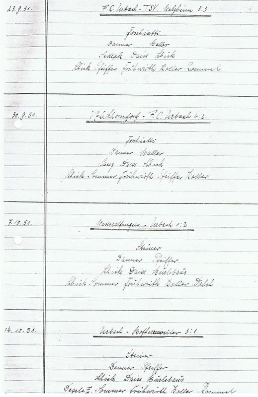 FCTV Urbach Saison 1951 52 23.09.1951 30.09.1951 07.10.1951 14.10.1951