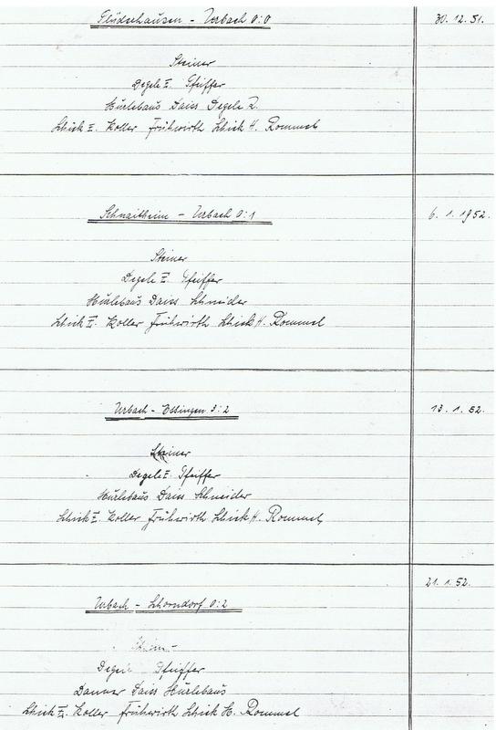 FCTV Urbach Saison 1951 52 30.12.1951 06.01.1952 13.01.1952 21.01.1952