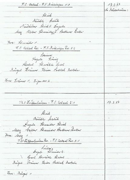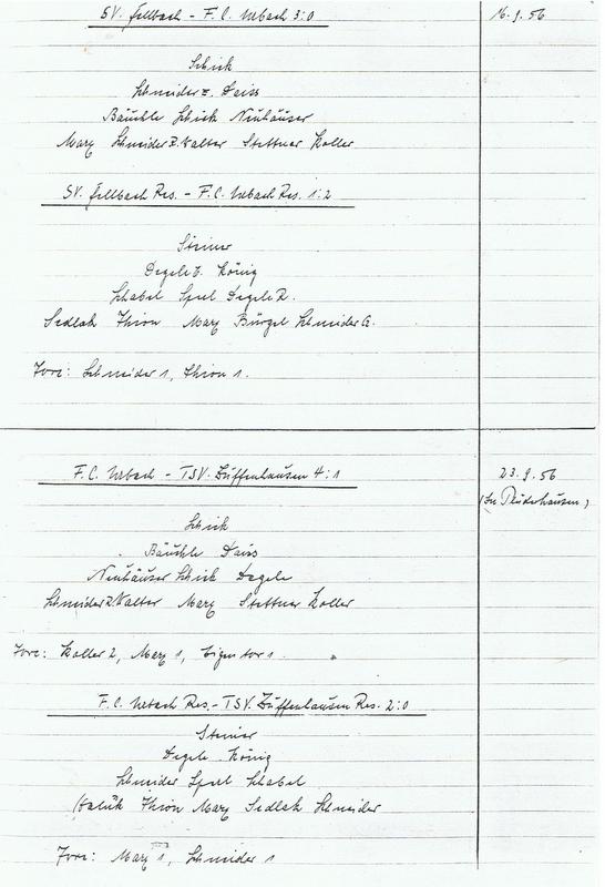 FCTV Urbach Saison 1956 57 16.09.1956 23.09.1956