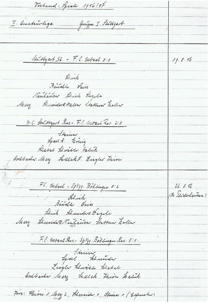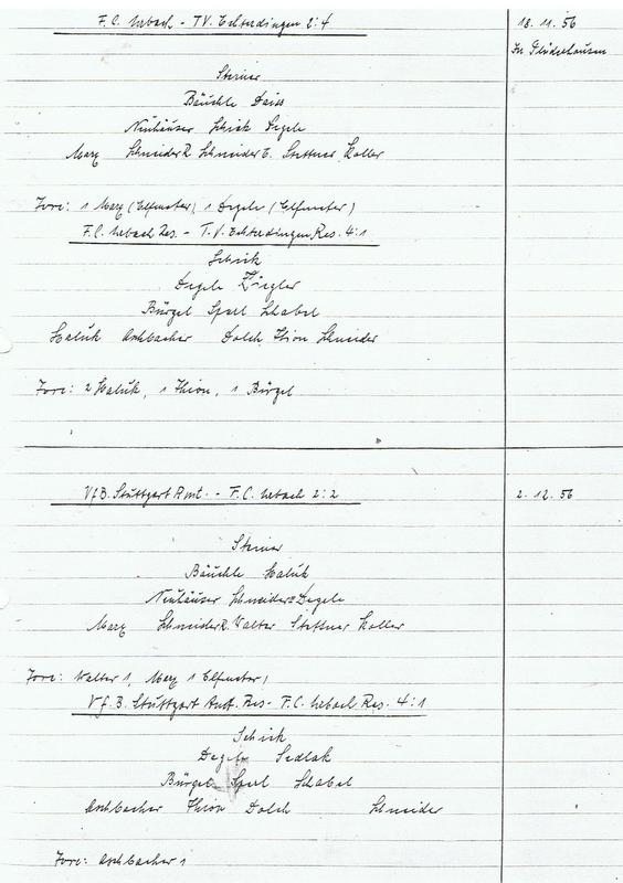 FCTV Urbach Saison 1956 57 18.11.1956 02.12.1956