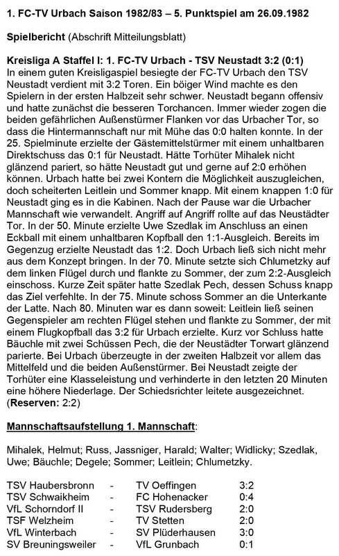 FCTV Urbach TSV Neustadt Saison 1982 83 5. Punktspiel 26.09.1982 WORD
