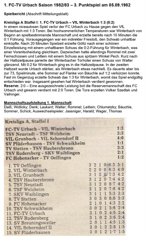 FCTV Urbach VfL Winterbach Saison 1982 83 3. Spieltag 05.09.1982 WORD