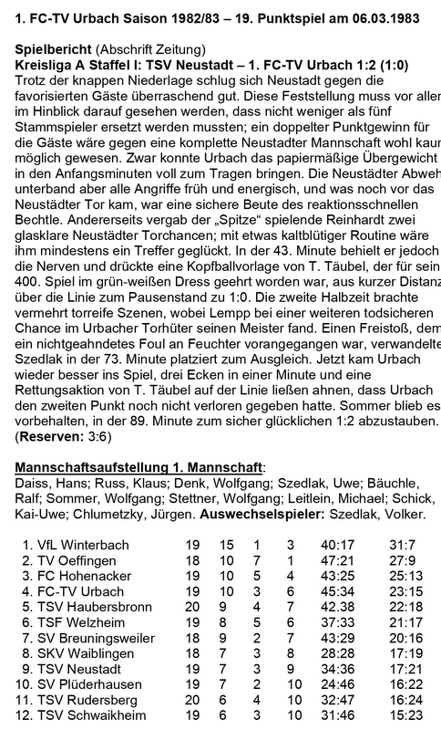 TSV Neustadt FCTV Urbach Saison 1982 83 19. Punktspiel 06.03.1983