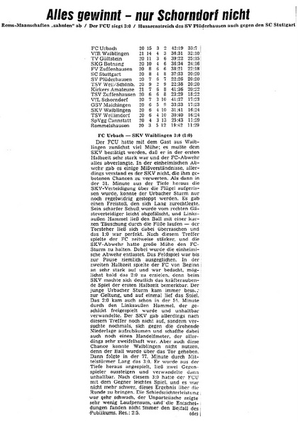 FCTV Urbach SKV Waiblingen Saison 1981 82 1. Punktspiel am 30.08.1981