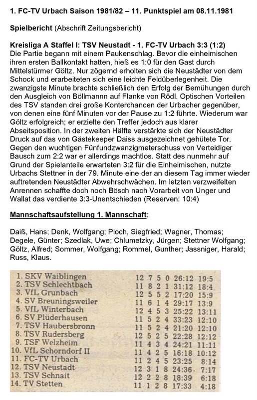 TSV Neustadt FCTV Urbach Saison 1981 82 11. Punktspiel am 08.11.1981