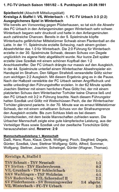 VFL Winterbach FCTV Urbach Saison 1981 82 5. Punktspiel am 20.09.1981