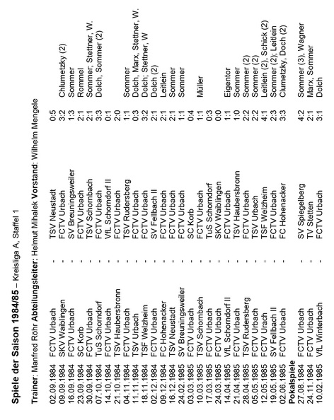 FCTV Urbach Saison 1984 1985