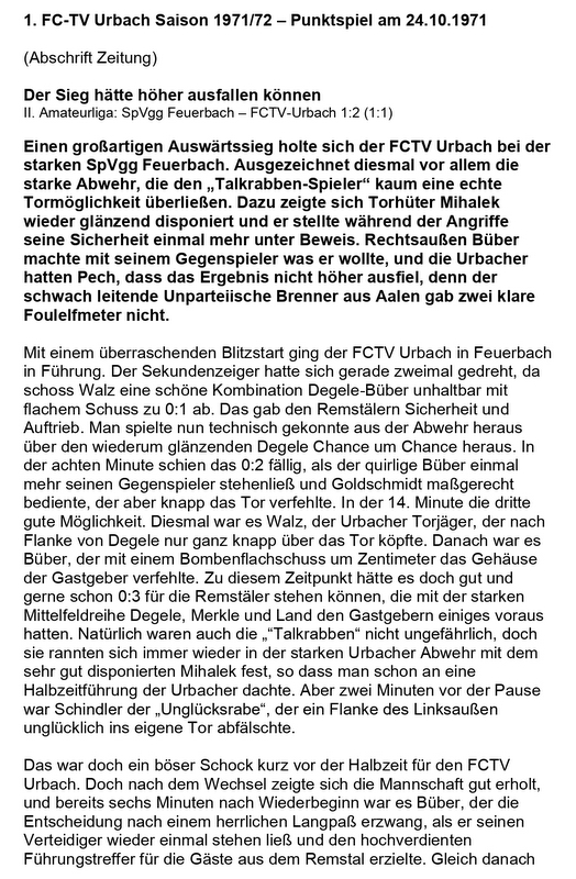 SpVgg Feuerbach FCTV Urbach Saison 1971 72 am 24.10.1971 Seite 1