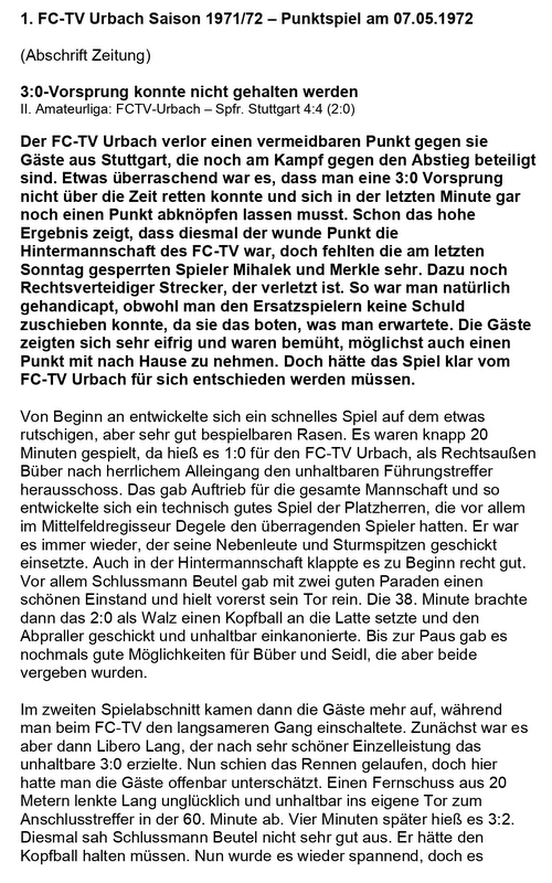 FCTV Urbach Spfr- Stuttgart Saisson 1971 72 am 13.02.1972 Seite 1