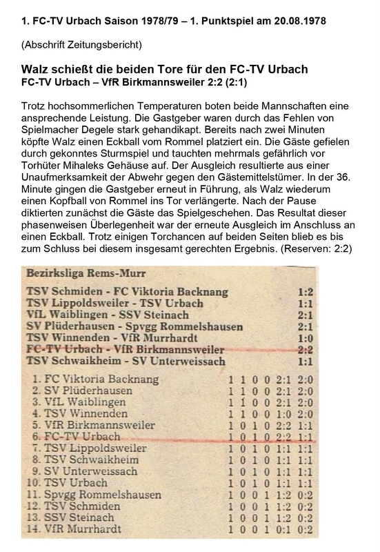 FCTV Urbach Saison 1978 79 1. Punktspiel FC-TV Urbach VfR Birkmannsweiler 20.08.1978