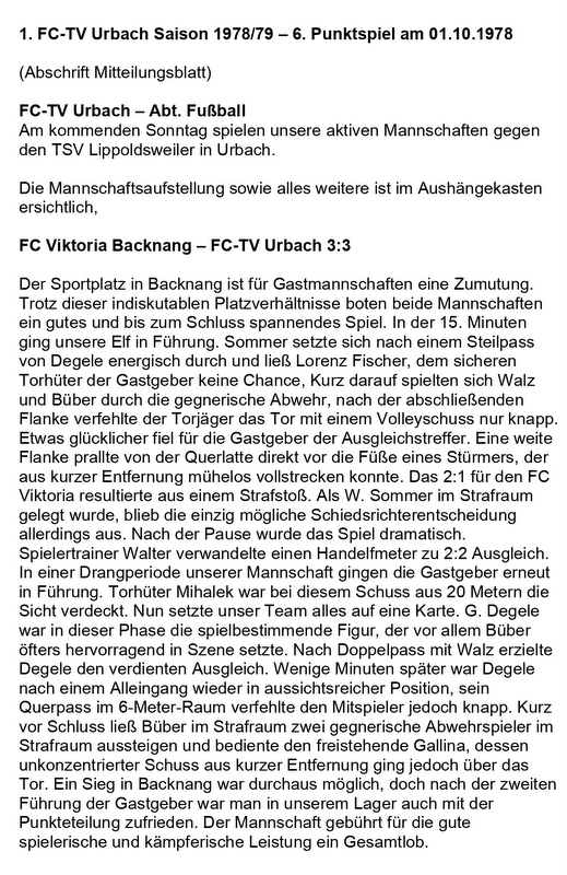 FCTV Urbach Saison 1978 79 6. Spieltag FC Viktoria Backnang FCTV Urbach 01.10.1978