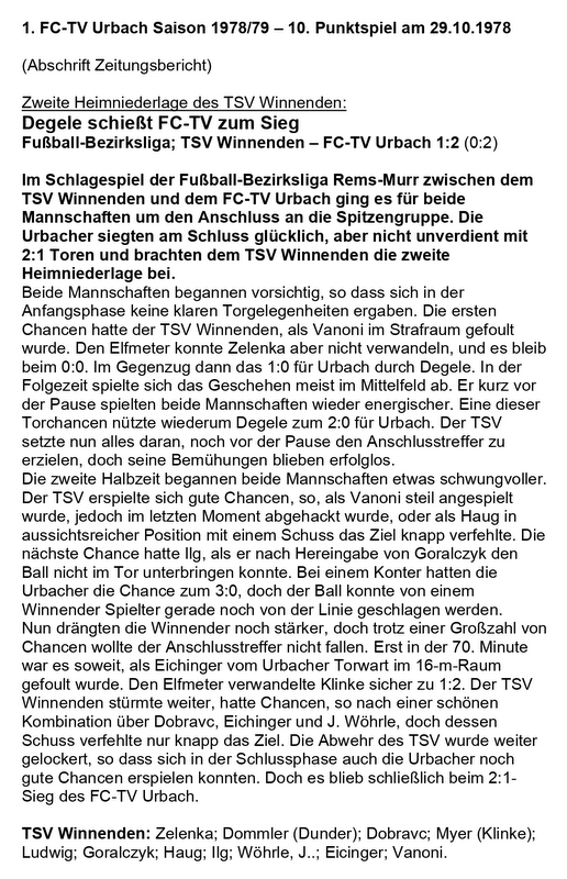 FCTV Urbach Saison 1978 79 10.. Spieltag TSV Winnenden FC-TV Urbach 29.10.1978
