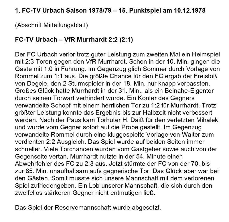 FCTV Urbach Saison 1978 79 15. Punktspiel FC-TV Urbach VfR Murrhardt 10.12.1978