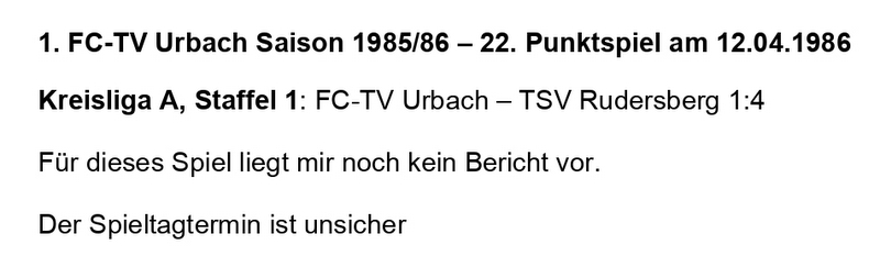 FCTV Urbach Saison 1985 86 FCTV Urbach TSV Rudersberg 22. Spieltag am 12.04.1986