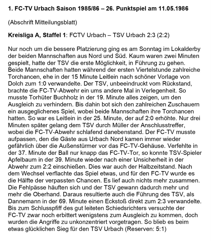 FCTV Urbach Saison 1985 86 FCTV Urbach TSV Urbach 26. Spieltag am 11.05.1986 ungeschnitten-001
