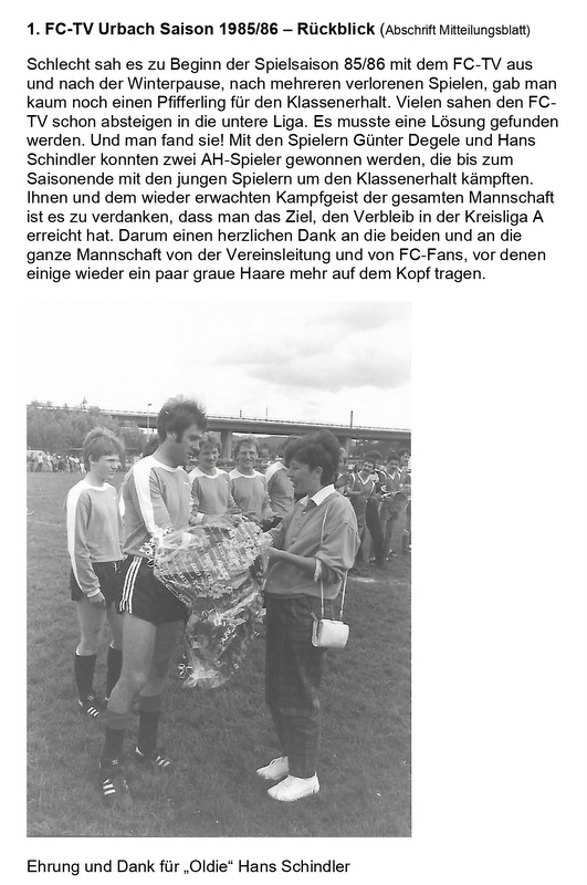 FCTV Urbach Saison 1985 86 Rueckblick