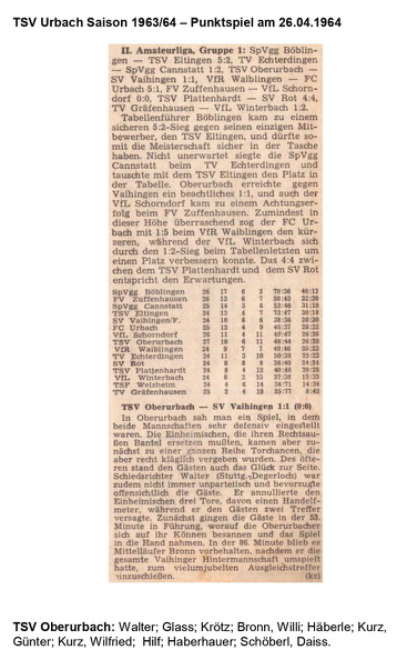 TSV Urbach Saison 1963 1964 FC Urbach TSV Oberurbach 19.04.1964 Foto