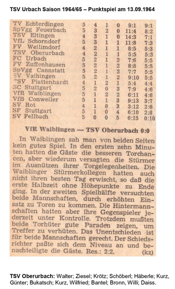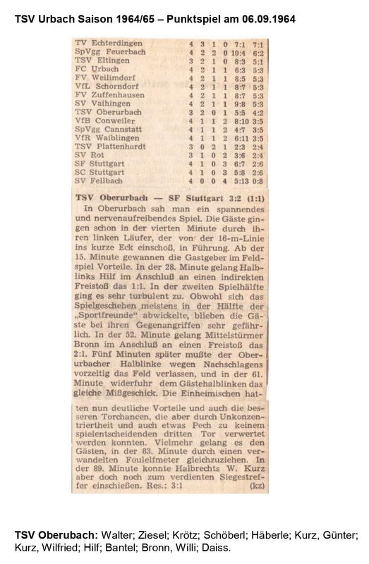 TSV Urbach Saison 1964 1965 TSV Oberurbach SF Stuttgart 06.09.1964
