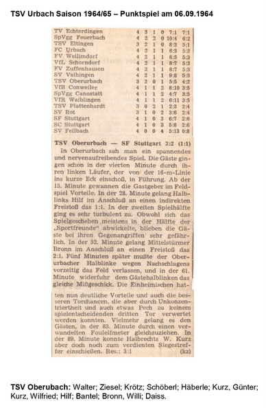 TSV Urbach Saison 1964 1965 SV Vaihingen TSV Oberurbach 30.08.1964