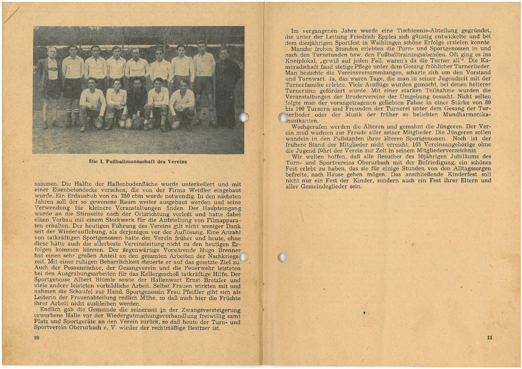 TSV Urbach Festschrift 50 Jahre 1949 Seite 10 und Seite 11