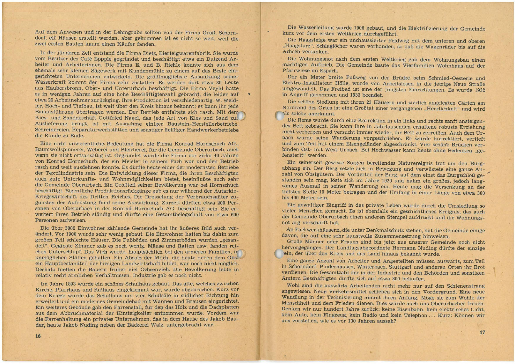 TSV Urbach Festschrift 50 Jahre 1949 Seite 16 und Seite 17
