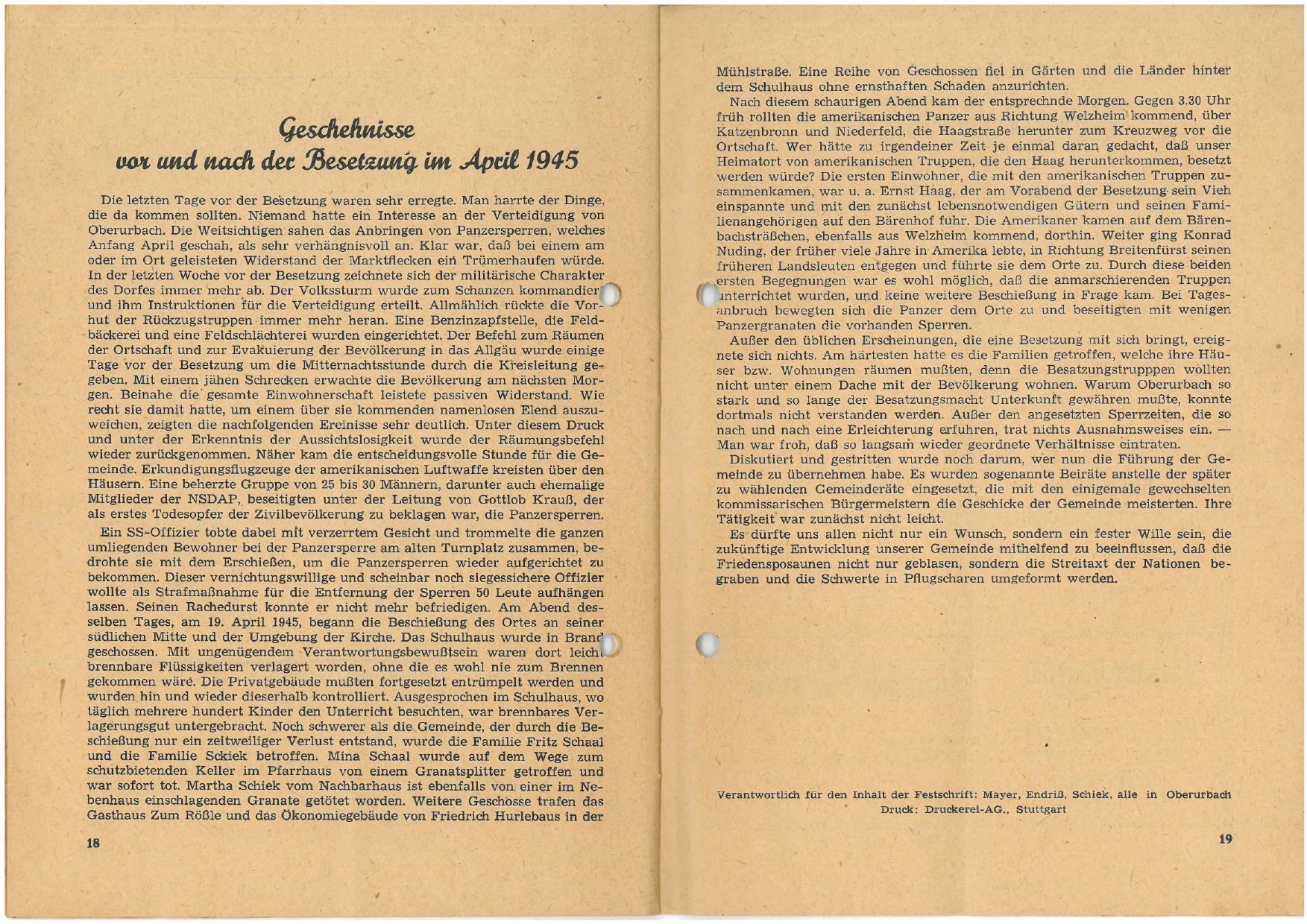 TSV Urbach Festschrift 50 Jahre 1949 Seite 18 und Seite 19