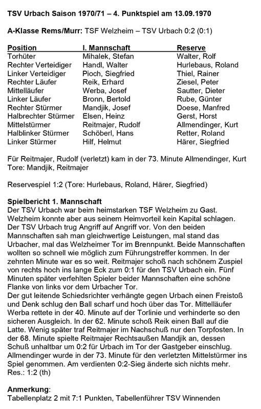 TSV Urbach Saison 1970 1971 TSF Welzheim TSF Urbach 13.09.1970
