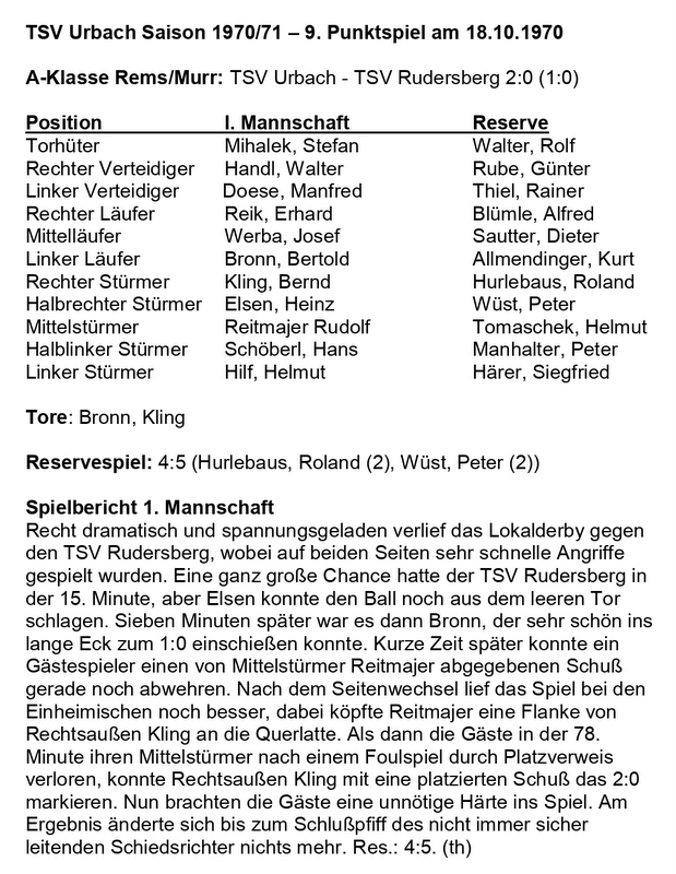 TSV Urbach Saison 1970 1971 TSV Urbach TSV Rudersberg 18.10.1970 Seite 1