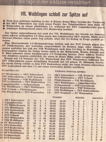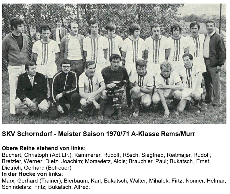 SKV Schorndorf Saison 1970 71 A-Klasse Meistermannschaft mit Namen