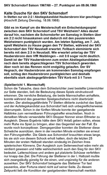 SKV Schorndorf Sasion 1967 1968 SV Hegnach SKV Schorndorf 09.06.1968 Seite 2