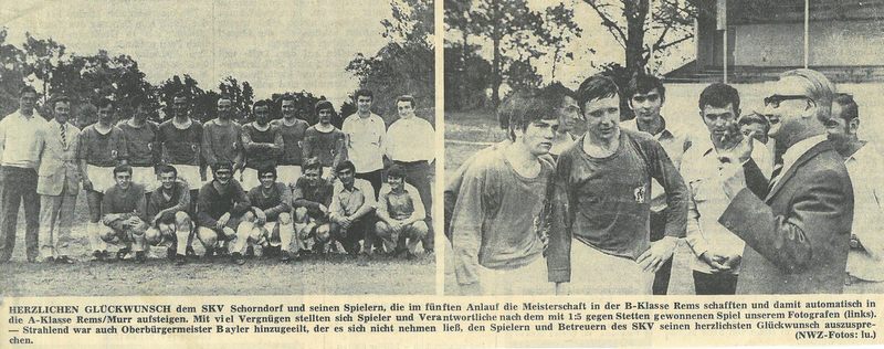 SKV Schorndorf Saison 1969 70 B-Klasse Rems SKV Schorndorf TV Stetten Meisterschaft perfekt