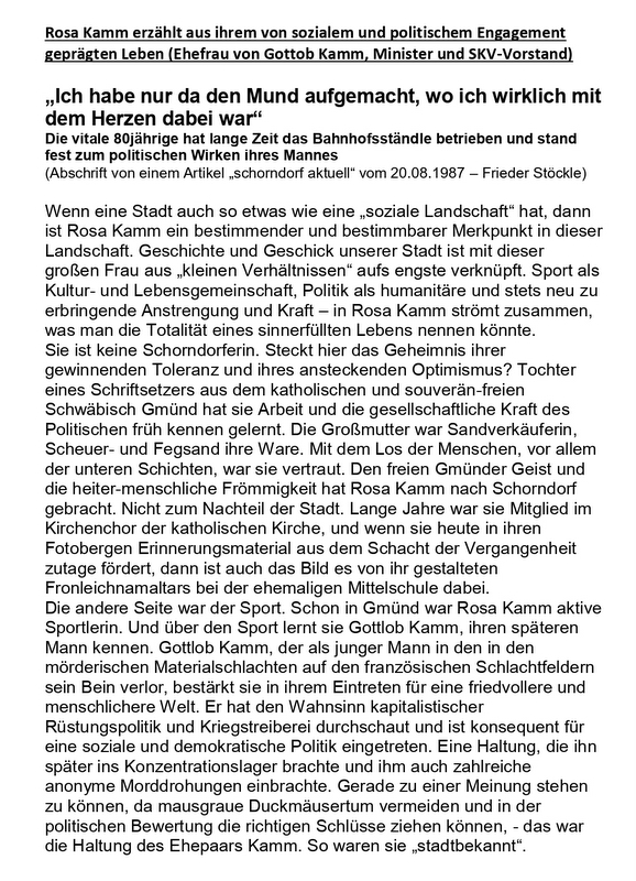 Rosa Kamm geb. 26.07.1907 verst. 04.01.1996 sozial politisch und sportlich engagiert Seite 1
