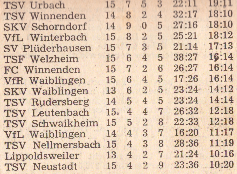 SKV Schorndorf Saison 1970 71 TSV Urbach SKV Schorndorf 06.12.1971 Tabelle 14. Spieltag