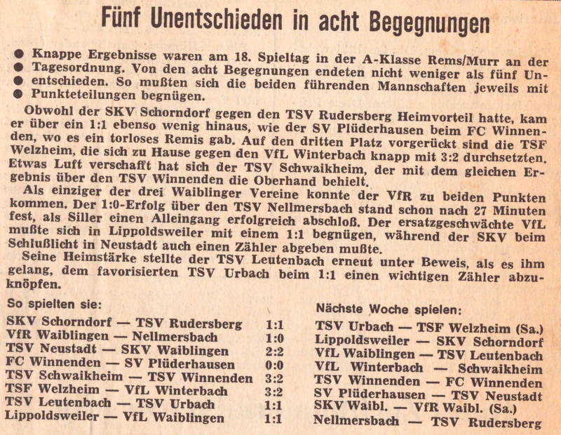 SKV Schorndorf Saison 1970 71 SKV Schorndorf TSV Rudersberg 28.02.1971 Der 18. Spieltag