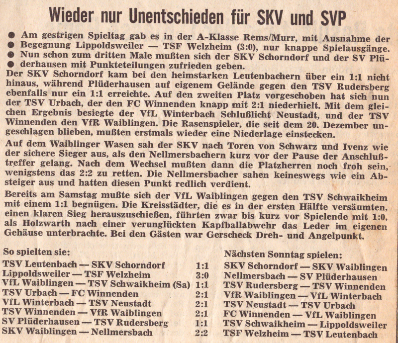SKV Schorndorf Saison 1970 71 TSV Leutenbach SKV Schorndorf 21.03.1971 Der 21. Spieltag