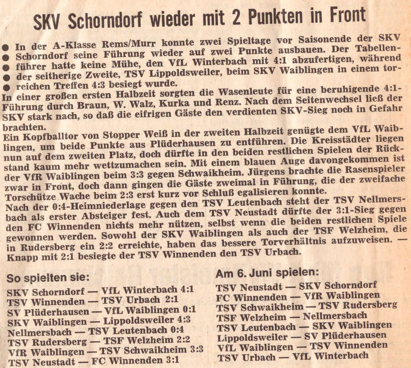 SKV Schorndorf Saison 1970 71 SKV Schorndorf VfL Winterbach 23.05.1917 Der 28 Spieltag