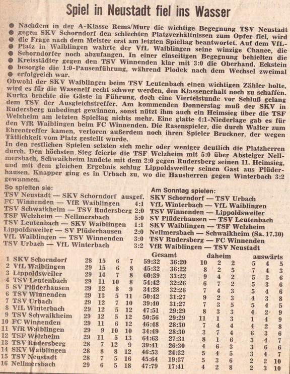 SKV Schorndorf Saison 1970 71 SKV Schorndorf ausgefallen am 06.06.1971