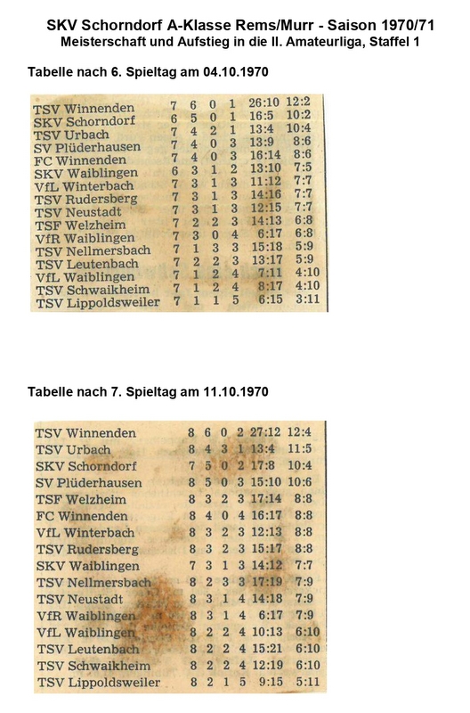 SKV Schorndorf A-Klasse Saison 1970 71 Tabellen von Spieltagen Teil 3 page-002