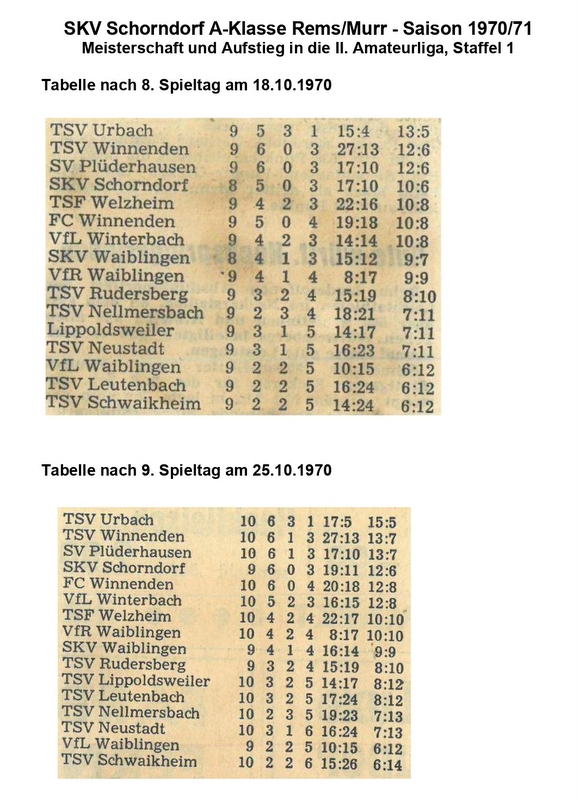 SKV Schorndorf A-Klasse Saison 1970 71 Tabellen von Spieltagen Teil 4
